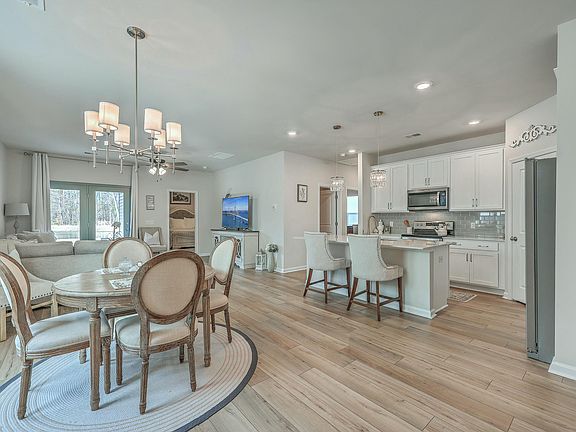 This 2022-built home, situated on a premium lot, offers enhanced privacy and open space. The easement to the right of the property ensures no future construction will obstruct your views or limit your space, and the home backs up to wetlands for a serene natural backdrop. This 3-bedroom, 2-bathroom, 1-story open-concept home is perfect for those seeking the ultimate in comfort and convenience. The kitchen boasts a large island with quartz countertop, stainless steel appliances, and plenty of storage. The primary suite features a walk-in closet with built-in shelving and an en-suite bathroom with dual vanity sinks and upgraded tile in walk-in shower. The two additional bedrooms are perfect for guests, with easy access to the second full bathroom.