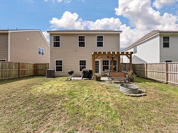 Gorgeous 5 years young home has all the bells and whistles plus plenty of room to grow inside and out with the generous floor plan and a huge wooded lot. Tasteful upgrades throughout including master bathroom and shower, staircase and railings, numerous feature walls, kitchen backsplash/hardware, wood privacy fencing, outdoor pergola with tin roof for the sounds of rainy evenings and extended patio for your cook-outs. Enjoy peace of mind that your privacy is protected as the woods backing the home are owned by the Naval Base and cannot be developed! This home is convenient to all things including Joint Base Charleston, Highways, Airports, major industry (Volvo/Boeing), and more!