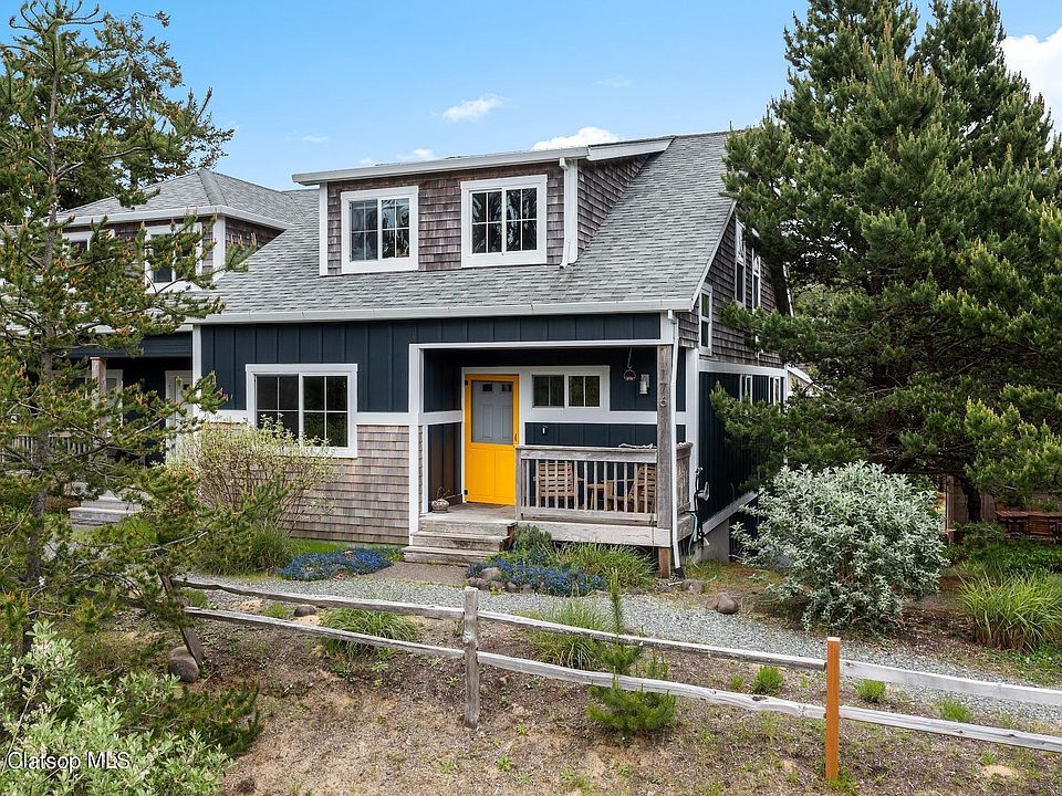All day light and bright south end unit at this close-in charmer, faces East, South and West. Updated floors and kitchen, solid wood finish carpentry. Propane fireplace. Cozy south facing outdoor area. Walkable to beach and town, just outside of tsunami zone, across street from golf course. 2 car garage. Close knit 3 unit HOA.