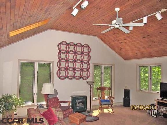 Wonderful contemporary nestled in the woods but only minutes from town, campus and shopping. The property adjoins the State Gamelands and is located on a quiet cul-de-sac. Enjoy the backyard from the screened porch on the deck. The beautifully landscaped walkway leads to an inviting living room with hardwood flooring and a vaulted ceiling. The open kitchen/dining area leads to a spacious family room with a cathedral ceiling. Buyer must pay the $650 Halfmoon water fee.