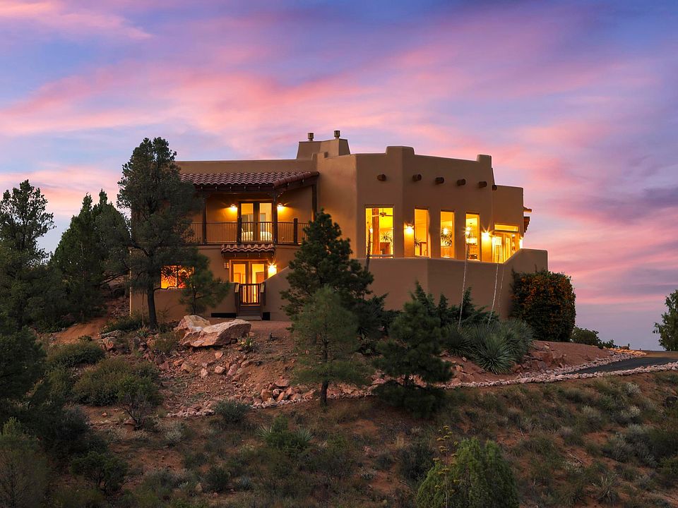 Welcome to your dream Santa Fe style home in a picturesque setting! This stunning residence offers a unique blend of Southwestern charm and eco-friendly features, making it the perfect paradise.