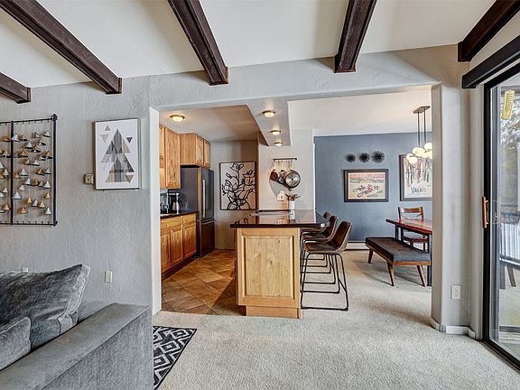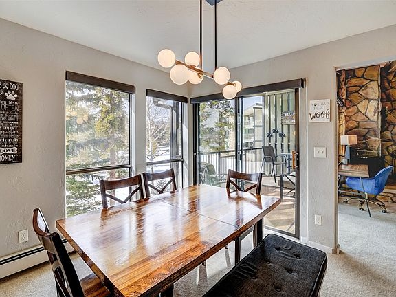 Experience the best of mountain living in this charming top floor condo in the heart of Dillon, just moments from the shores of Lake Dillon and the iconic Dillon Amphitheater! This beautifully designed unit offers an open-concept layout with vaulted ceilings, creating a spacious feel. The cozy living room features a wood-burning fireplace, perfect for chilly evenings, and sliding glass doors that lead to a covered balcony with breathtaking panoramic views of Lake Dillon and the surrounding mountain landscape. The adjacent kitchen and dining area provide a seamless flow for entertaining, with additional sliding doors in the dining room allowing for easy access to the balcony—an ideal spot for morning coffee or evening relaxation. The spacious bedroom is a peaceful retreat with vaulted ceilings, while the stunning bathroom is thoughtfully designed and includes the added convenience of in-unit laundry. Additional storage solutions include a ski locker right outside the unit door and extra basement storage, ensuring space for all your mountain gear. Life at Lake Cliffe condos is rich with amenities, including an indoor pool, hot tub, tennis courts, a sailing & yacht club, and a community room with common laundry. Two parking spaces add to the convenience, and short-term rentals are allowed, making this a fantastic investment opportunity or a perfect getaway home. With unbeatable proximity to world-class skiing at Keystone, Breckenridge, Copper, and A-Basin as well as concerts, farmers markets, and endless outdoor recreation, this condo is a rare find in downtown Dillon. Connect to Frisco, Keystone, and Silverthorne via the bike path outside your door or take advantage of the free bus to the slopes and around Summit County. HOA dues cover heat, internet, gas, cable and all other utilities except a very minimal electric bill. Whether you’re seeking a weekend retreat, a full-time residence, or a rental property, this is your chance to own a slice of Colorado paradise!