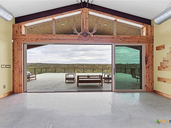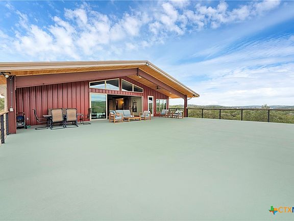 MOTIVATED SELLERS! This incredible Barndominium offers a rare combination of function and comfort, featuring a massive 4,500 sq ft climate-controlled shop downstairs and 2,500 sq ft of living space upstairs. Perfectly perched for breathtaking, panoramic Hill Country views, this unique retreat blends rustic charm with modern comfort. Upstairs, the open-concept design includes 3 spacious bedrooms, 2.5 baths, soaring ceilings, and expansive windows that flood the space with natural light and bring the outdoors in. Imagine sipping wine on the oversized 2,000 sq ft porch, watching the sunset illuminate miles of rolling hills, or entertaining under a canopy of stars. The air-conditioned shop below is a dream for anyone needing space to create, build, or store. With two garage doors for easy access, it's ideal for large projects, hobbies, or even a luxury car collection. The shop includes a dedicated office (potential guest quarters or rental space) with a full bath and a mechanical room prewired for washer and dryer. Soundproofed and built for light commercial use, it’s equipped with (4) 80-amp drops and additional 30-amp outlets—perfect for operating a business from home. With your own well water the average UTILITY bills are less than $250 for almost 7000 sq ft!!! With no city taxes and no HOA, this property offers flexibility, privacy, and incredible potential—whether you’re seeking a weekend escape, an income-producing property, or a one-of-a-kind forever home. Don’t miss your chance to own an elevated piece of Hill Country heaven!