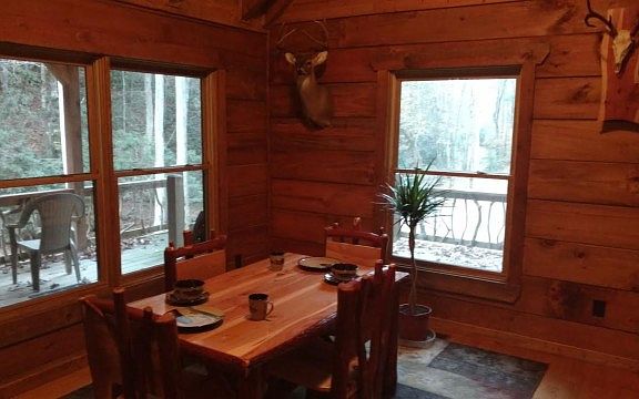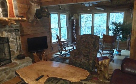 Private and secluded Custom Log Home on a year round creek! Within walking distance of the Hiwassee River. Forest Service Boundary. Open loft could be used as a bedroom or game room! Master looks on your own personal waterfall!