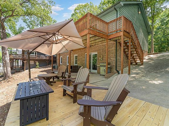 This fantastic home is located on Lake Tillery's main channel in the exclusive gated Woodrun community. The house has plenty of space for both family and friends and comes fully furnished, ready for fun from day one. Upstairs features 3 bedrooms, 2 baths, kitchen, living room and deck overlooking the lake. The walkout basement includes a second kitchen, washer/dryer, bedroom with attached full bath, living area with fireplace, as well as an unfinished storage room. Private dock with boat lift, ‘sun deck’ covered gazebo with lots of room to play. Neighborhood amenities include pool, day docks, boat ramp, lighted tennis courts, playground, and gatehouse.