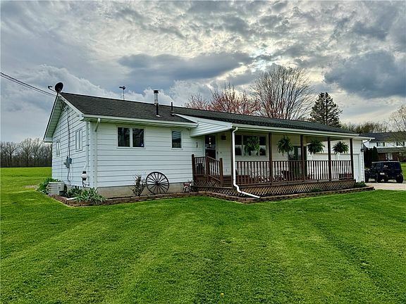 Get out of town and enjoy some fresh air & peace! This modern 3bd Ranch home sits on over an acre and features a daily sunrise and sunset (free of charge). Room for your toys is just a garage door away. This Garage was built to handle all your projects and maintenance needs. Step inside and you're greeted by a fresh design with touches of charm throughout. The heated and air conditioned breezeway can be used to kick off your shoes or made into a den/office and extra living space. The kitchen and dining room are ready for meals and memories. Relax in the living room or step out front to the inviting covered front porch. The recently upgraded bathroom is almost to nice, so on the really dirty days you can head downstairs to the bonus shower! Two nicely sized bedrooms with ample closet space finish off the first floor. Head down to the basement where you will find a custom built Third bedroom featuring Tons of natural light, a walk in closet, and plenty of space. Welcome Home!