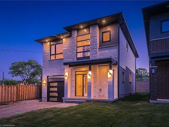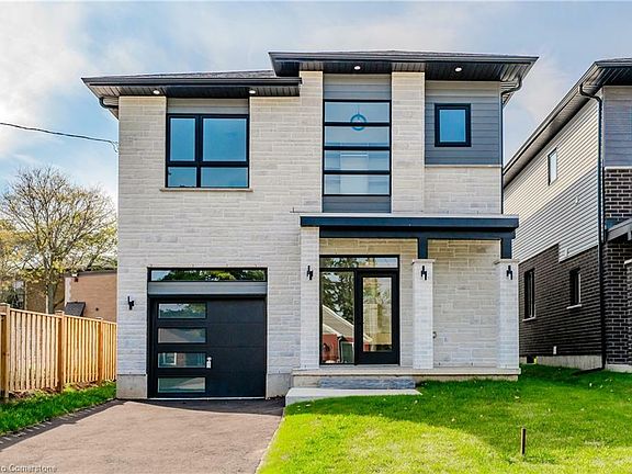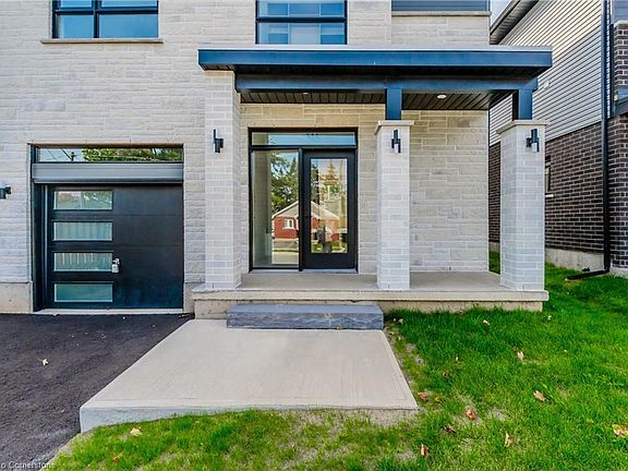 Newly built custom home in an established West Galt neighbourhood in Cambridge. The curb appeal of the luxurious white stone greets you as you pull up to 176 Forest Road. The engineered hardwood floors are warm and inviting. The wide, stained oak staircase with black iron spindles blends seamlessly. Light flourishes in through the large windows & sliding glass door. Imagine entertaining guests around the elegant 2 tone designer kitchen, feat. a waterfall quartz countertop, eat-in seating at the island, tiled backsplash and LED under cabinet lighting. Cozy up by the fireplace mantel, painted in a striking navy finish. The comfort of 9 ft. ceilings is present on both the main and second levels. The second level will take you to the primary bedroom, which is equipped with its own private ensuite with floating vanity, double sinks and glass shower. The closet organizer in the primary walk-in closet will have you feeling like you are picking out your clothes from a designer store every morning. The incredible features don't stop there. The engineered hardwood flooring continues throughout the main level & the second level hall. Be impressed by the size of the second and third bedrooms, and by the thoughtful location of the laundry room. A second set of stained oak stairs leads you to the unfinished basement, where you will find a blank canvass for your own personalization. Several egress windows and rough-in for a 3-piece bath provide you ample opportunity to construct a fourth bedroom and another bathroom. Imagine creating your own exercise room or recreation area in this space. Unbeatable location, unlocking the entertainment that the historic downtown Galt and Gaslight District have to offer, and providing convenient access for a number of commuting routes. Tarion warranty included. KITCHEN AND LAUNDRY APPLIANCES INCLUDED. Book now to witness the epitome of excellence the Dove Collection by A & F Greenfield Homes Ltd. has to offer. Some images contain virtual staging.