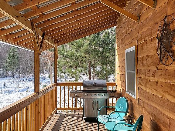 Perhaps the nicest Small Adirondack Cabin I have ever seen is offered for the first time because the sellers are relocating. This year round, off the grid home was custom built by the seller using local suppliers and local saw mills to give an attention to detail that is rarely seen. Exposed beams, wood trim, wood countertops, comes with stove, refrigeration, washer dryer, instant hot water, and fully furnished! Set on 20 acres with manicured trails throughout, the property is also adjacent to Village of Dolgeville watershed land for extra hunting or hiking land if you wish. Wildlife abound, and a cleared section would allow for a few animals for a small, sustainable farmette. The road is seasonal, but plowed by neighbors and crosses the snowmobile trial for the Ridge Runners, a major snowmobile club about a mile away, giving you access to groomed, interconnecting trails covering all of upstate New York. Relax on the beautiful front covered porch and admire your private kingdom. Heat is with propane or a small, very efficient wood stove. Outbuildings include a shed near the home and a workshop down in the woods. If your goal is peace and quiet yet only a few miles from civilization, this is your perfect get-a-way. Use for yourself year round, for occasional weekends, or as an exciting B&B rental.