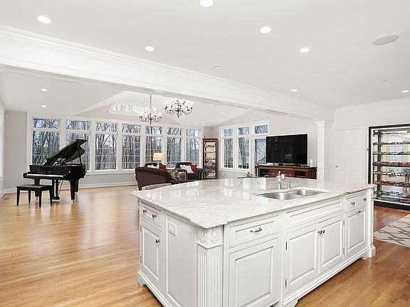 JUST REDUCED! This magnificent 5 bedroom, 5.5 bath energy efficient Colonial has been meticulously renovated w/ luxurious finishes and designed to take advantage of the natural light that pours into all rooms giving it a very open and airy feel. If working from home, the generously sized main floor office with custom built in cabinetry and shelving, will be a perfect space for you to spend your time in each day! The sun-drenched main level has 9 ft ceilings, a gourmet kitchen complete with an enormous island, opening to the grand vaulted common great room, is the center for family and friend gatherings. French door leading to a spacious stone patio on one side (WITH POOL SITE), and cedar deck on other. Be prepared to be WOWED by the enormous master suite with soaring vaulted ceilings, his/hers walk-in closets, fireplace & spa-like bath. Walk to town, schools & Waveny Park. Tucked back from the mayhem, on a 1.26 acre lot, with POOL SITE, make this an ideal and exceptional value!