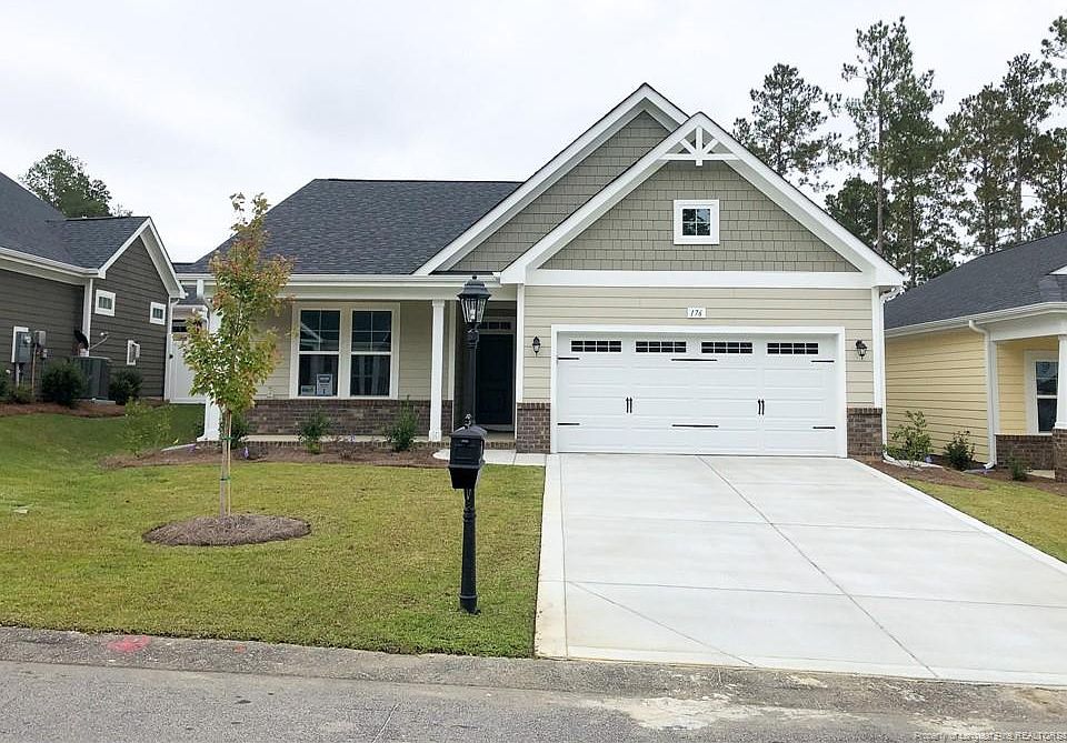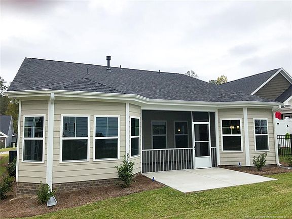 The Harmony by H&H homes is located in the age targeted 55+ neighborhood of Carriage Glen in the gated community of Anderson Creek Club. This home consists of an open family room and kitchen which provide ample space to gather as a family or for hosting. The kitchen features a large island and a walk-in pantry and a gas option. The spacious master bedroom features an en-suite master bathroom that has dual vanities, an over-sized shower, and a walk-in closet. Bedroom 2 is located adjacent to the second full bathroom and bedroom 3 is located by the garage. The dining room is open and could be used as a study as well. There is optional yard maintenance with additional fee. POA dues include internet, access to the on-site gym, and much more! Buyers Incentive: All closing costs, refrigerator and blinds!