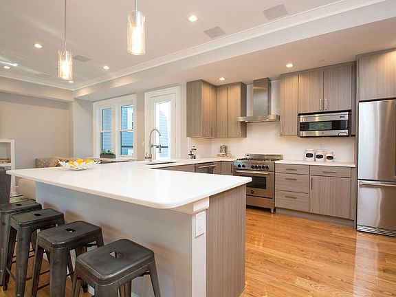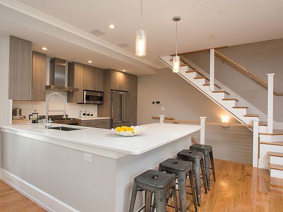 Exceptional 2015 townhome construction on quiet street on the West Side. Boasting 1,500+sqft over 3 levels, this corner 2+ bed/2.5 bath townhouse feels & lives like a single family. First floor offers spacious full-size 2 car GARAGE w/ additional storage & gracious entry w/ bonus room currently configured as a home office. Second floor is entirely open concept design w/ suburban sized eat-in kitchen featuring Viking appliances, Bertazzoni oven, wine fridge, quartz counters/backsplash & 4-seat island. Large sunny 8 person dining room, powder room & comfortable living area w/ gas fireplace, built-in bookcases, surround sound speakers plus 2 separate outdoor spaces including front-facing juliette balcony & rear deck complete this floor. The top level features full size laundry closet, spacious guest room w/ en-suite bath & master sanctuary w/ oversized marble bath & large custom walk-in California closet. Private 19x18 ROOF DECK w/ outdoor kitchen, gas grill & sweeping views of downtown.