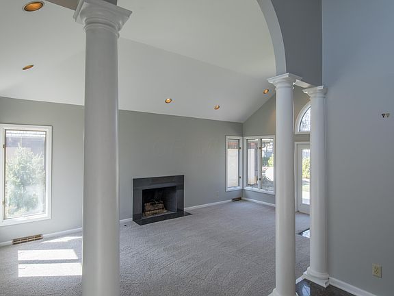 This custom built Bob Webb patio home in the Village at the Sanctuary in Worthington Schools is ready for only its 3rd owner. Welcome your guests through a grand 2-story entry w/ curved staircase & white columns. The large great room features vaulted ceilings w/ can lighting & granite fireplace. A flex room w/ wet bar is perfect for an office, formal dining or play room just off the kitchen. Granite counter tops, stainless steel appliances, hardwood floors & a custom buffet cabinet complete the large eat-in kitchen. 3 beds upstairs w/ 2.5 baths, including a master suite w/ vaulted ceiling & deluxe bath. Includes 1st floor laundry, partially finished basement w/ bath rough-in, paver driveway, cedar shingle roof, backup generator, cedar closet, fresh paint & new carpet. Great local shopping.
