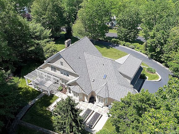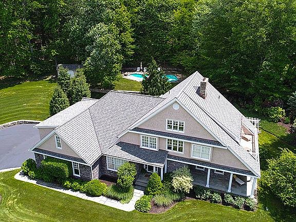 Call Pat Blanko 203-206-9194! Nantucket style stone and cedar home with sunset vistas across distant mountain ridges from the wrap-around slate porch with stately columns. Entertain outdoors on a terrace under a grand pergola and in-ground pool. Lush 1.5 acres of irrigated lawn, numerous stone walls, pebbled walks, and mature landscaping! The house features a chef's kitchen fully outfitted with an updated caesar stonebaker's island centered under a dramatic high vaulted ceiling; stainless appliances including 6 burner gas stove and high volume vented hood; wine cooler; Subzero and eating area surrounded by windows - just outside are the raised brick vegetable beds for garden-to-table kitchen. Formal LR with impressive stone fireplace, walls of windows and triple French doors to terrace; Formal dining room; and FR with the 2nd fpl! Also, first floor guest/in-law suite has vaulted ceiling, private entrance and bathroom. The 2nd FLR has: a MBR w/home office area, decorative mosaic fireplace, 7.1 home theater and Juliet balcony; 2 additional BRs and a playroom. Third floor boasts 5th bedroom/studio with en-suite. Lower level includes tons of storage. Home automation features include outdoor video security system, remote heating/cooling/irrigation/lighting control. New lifetime Grand Manor roof with copper details. Oversized 3 car garage. Truly spectacular home and grounds! Call Pat Blanko 203-206-9194!