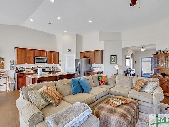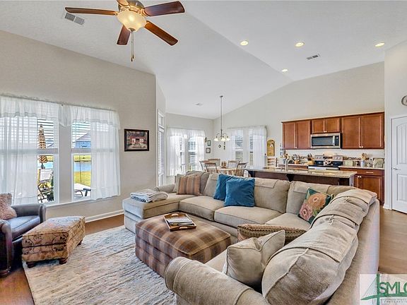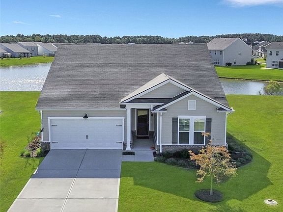 Boasting serene views of the lagoon, this beautiful 3 bed 2 bath home is sure to impress! Inside you will find a bright and airy floor plan where the spacious living area flows seamlessly into the home's dine-in kitchen featuring gorgeous granite countertops, stainless steel appliances, and a generous pantry. The primary suite is a true retreat offering new homeowners a private bath and luxurious walk-in closet. Sturdy LVP flooring throughout the common areas for easy maintenance, while plush carpeting in the bedrooms ensures a cozy atmosphere. Step outside to the home’s covered porch and patio overlooking the lagoon, adding beauty and serenity to any outdoor experience. Cumberland Point residents may also enjoy a number of neighborhood amenities including a community pool, playground, and more- just minutes from Pooler with easy interstate access!