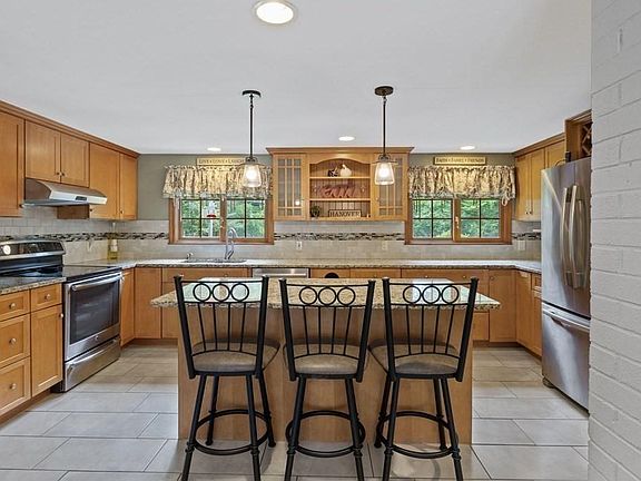 One level living at its finest! This classic ranch-style home w/ 3 beds, 2 full baths is sure to delight! At the heart of the home is a well-equipped kitchen w/ induction cooking, ss appliances, granite countertops, ample pantry space & double-sided fireplace. On the back side of the fireplace youll find an inviting dining area perfect for hosting family gatherings w/ beautiful double French doors that lead to a large, no maintenance deck, perfect for indoor/outdoor entertaining. Step down from the kitchen into the oversized family room which features a cathedral ceiling, skylight, floor to ceiling windows, hardwood floors, and exterior access. The finished basement is the perfect place for a home office or play room. A laundry area and generous unfinished storage space complete the lower level. The private lot and fully fenced backyard provide the perfect place for pets and children to play. The property is equipped with 2 sheds and plenty of off-street parking. Don't miss it!
