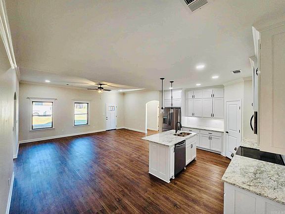 Are you looking for a new 2023 construction home in Beebe under 290K? We have the perfect home for you. This 3 bedroom, 2 bathroom, open concept home with a split floor plan boosts beautiful colors of gray, luxury vinyl flooring with granite counter tops. This home is all electric and features all new stainless steal appliances including a double door refrigerator. Take a look at the large master bedroom with panned ceilings that features a spacious bathroom with a walk in shower and double vanity. This home is in an active construction site, please proceed with caution, measuring encouraged.
