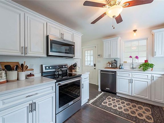 introducing a delightful 3-4bedroom house. This home offers a modern living experience with several appealing features. Upon entering, you'll be greeted by a beautiful, bright kitchen that sets the tone for the entire house. The kitchen features new stainless steel appliances (2021) and quartz countertops, creating a stylish and functional space. .The house features a range of recent upgrades, including a 2-year-old high-efficiency furnace, new hot water heater and an Electrolux washer/dryer added in 2022. New flooring in the kitchen as well as in the bedrooms. The master bathroom is beautifully renovated, featuring his& her sinks and a modern design that exudes luxury. Additionally, the home boasts an oversized master suite, offering ample space for relaxation and privacy. as well as a walk in closet. The fenced yard features newly installed vinyl fencing, ensuring privacy and security