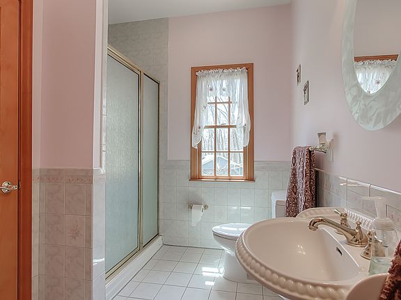 - Features: Road Type/City / Town Street, Sewer/Septic, General/Ceiling Fan(s), General/Smoke Detector, Pre-Wiring/Garage Door, Bath Features/Stall Shower, Garage Count/2 Car Garage, Flooring/Mixed, Exterior/Storage Shed, Water/Well, Kitchen Features/Eat-in Kitchen, Lot Description/Wooded, Kitchen Features/Center Island, Property Description/Acreage, Kitchen Features/Breakfast Bar, Exterior/Storm door, Lot Size/2-5 Acres, Age/11-20 Years Old, Kitchen Features/Butlers Pantry, General/Built-in Vacuum, Interior/Dry Bar, Location/Backs to Park Land