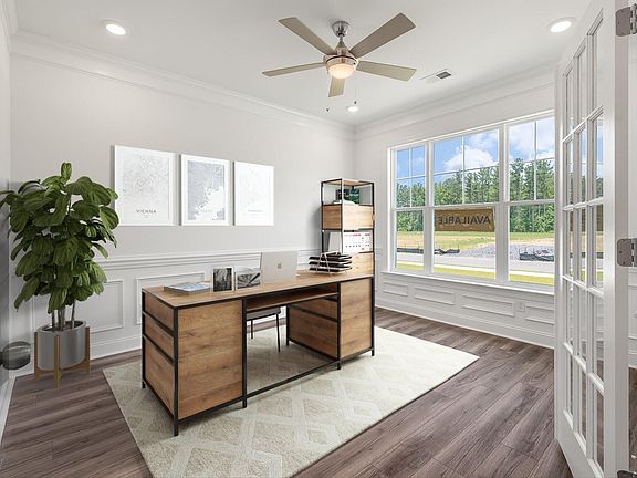 The Middleton lot 275 is a 4 bedroom, 3 bath home with a formal dining room, home office, a first-floor primary suite that features two walk-in closets and a luxury tiled shower with pull down sprayer in the primary bath, a designer kitchen with built-in oven with separate cooktop, peninsula style bar top and a separate island and walk-in pantry, a large laundry room and a covered rear porch. This home also features a second-floor loft, bedroom, and full bath. Designer features include tile backsplash, granite countertops, farm sink, enhanced vinyl plank flooring and tile flooring and more!