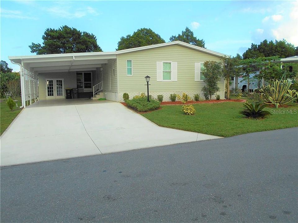 ON THE GOLF COURSE. Very nice two bedroom/two bath home in the desirable 55+ community of POLO PARK. Great open floor plan. The large open kitchen has new spaious windows FACING the golf course, a dishwasher,smooth top stove, microwave hood, refrigerator, a pantry, and a breakfast bar. The dining area offers a full wall of built-in cabinets. The hallway has a storage cabinet great for entertaining. All cabinetry has quiet self-closing drawers. The large living room opens out to a bay windowed office/craft room,which leads to a 10x19' Florida room with a wall of windows/screens, a ceiling fan and a wall air conditioner overlooking the GOLF COURSE. The master bedroom suite has a wall of mirrored closets and a bath w/shower. The washer/dryer is located behind louvred doors and offers more shelves for storage. The a/c was new in 2010. This home is beautifully landscaped, and hasa double drive extending in to a great covered lanai. The storage shed has storage shelves AND a ceiling fan! This home is priced to SELL! Polo Park West offers an Executive 9 hole golf course, two club houses with kitchen facilities, two heated swimming pools, tennis courts, shuffleboard courts, pool tables, exercise room, library, planned activities (such as Bingo, arts, crafts, sports), and an active neighborhood watch & safety program, and a tv station with community announcements. LOW HOA FEES OF $45/MONTH (and youown the land)!! This is a great retirement community with lots of activities. Homes sell quickly in this community, so don't delay.