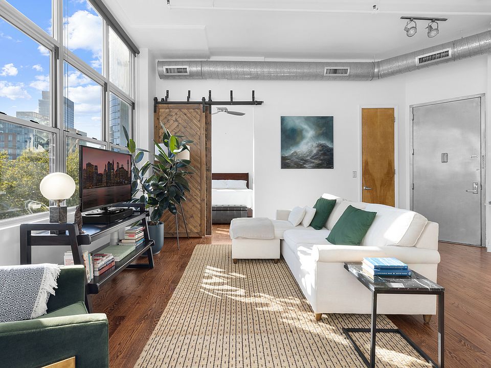 Welcome to 176 Johnson Street 7D, a spacious and inviting 821sqft 1-bedroom 1.5 bath loft apartment in Downtown Brooklyn's Toy Factory Lofts building. Available for rent starting July 1st, this delightful space offers a perfect blend of comfort and convenience. As you enter this sunlit apartment, you'll be greeted by an airy living space adorned with large windows that bathe the room in natural light. The open-concept layout seamlessly connects the living, dining, and kitchen areas, creating a perfect setting for both relaxation and entertainment. The well-appointed kitchen features stainless steel appliances, ample cabinet space, and sleek black stone countertops. The bedroom is generously sized, offering a serene retreat at the end of a long day. The en-suite bathroom offers a large vanity and deep soaking tub. This apartment also features a half-bathroom for guests, beautiful hardwood flooring throughout, an in-unit washer and dryer, and central air conditioning. The building offers a finished roof deck, gym, and package room. 176 Johnson Street is located in bustling Downtown Brooklyn, this offering easy access to an array of amenities. From trendy cafes and eateries to charming boutiques and parks, you'll have everything you need within reach. Commuting is a breeze with nearby subway stations and access to the A/C/F/R/B/Q trains within just a few blocks. 1st months rent, one month security and $20 app fee are required.