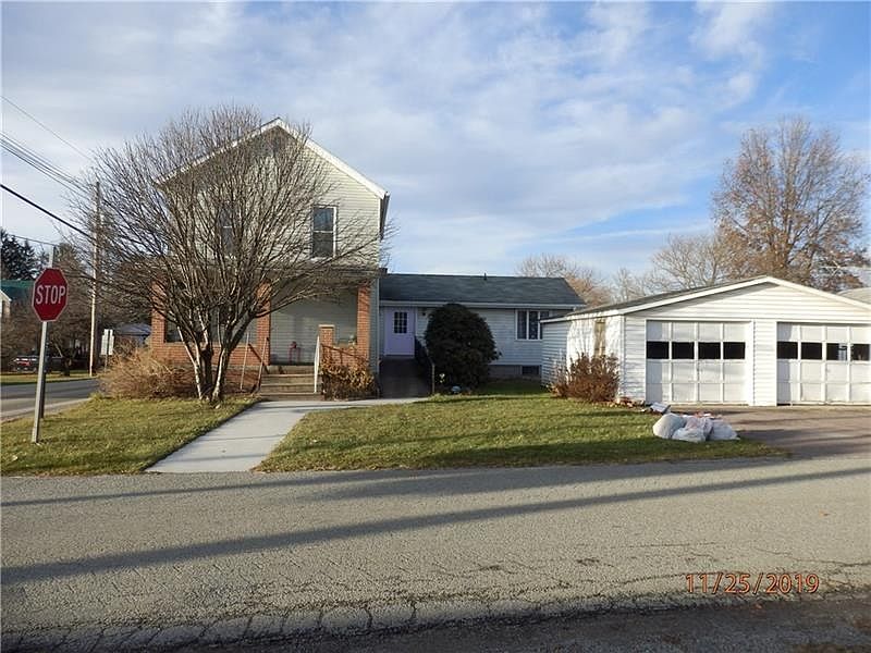 Nice family room addition with stone fireplace to the rear of the house offers large gathering space and two added bedrooms on the first floor. Handicapped accessible ramp with over sized entry door. Formal dining room and a bonus room that could be a den, office, or another sitting area. Detached two car garage. Nice yard area in the back. Covered front porch. Two oil heaters. Well drilled not too long ago with a water treatment system. Second floor has three rooms that are captive, counting as only one bedroom, Could make more if wanted. Close to outdoor activity areas.