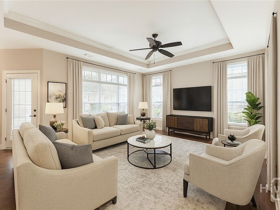 Fenced garden areaPrivate patioWood floorsLagoon fountainAbundant natural lightSpacious walk-in closetGranite countertops