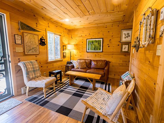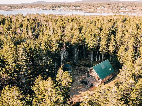 Nestled on over 3 private acres in Down East Maine, Bear Run Cabin offers a serene escape just steps to the coast and only 5 miles to Acadia National Park's Schoodic Peninsula. Enter the cabin to find a cozy living area, dining area, a well-equipped kitchen with a breakfast bar, a small bedroom downstairs, and a full bathroom with tub/shower. Upstairs, the open-concept, vaulted-ceiling primary bedroom opens to a balcony overlooking the front yard and gardens. A second full bathroom with a stall shower is also upstairs. Outside, unwind on the large front porch, listening to the sounds of nature and boats in the distant harbor. The nearby village of Winter Harbor (10 min) provides dining options, a grocery store, and a seasonal farmer's market. Explore rocky beaches, like the one by the Prospect Harbor Lighthouse a short walk/easy drive down the private road, or take a brief drive to Sand Cove Beach or Corea for sun and seafood. The property has been a successful short-term rental property with excellent reviews. Don't miss this tranquil retreat in a truly special area surrounded by mossy forests, beautiful pine trees, and the crisp air of Down East, Maine. Showings by appt. only begin Sat. 5/4.