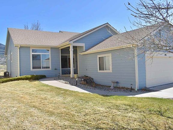 Welcome to carefree living at it's best. This single family, Ranch Style home is perfectly situated on a cul-de-sac, where you will enjoy incredible views of the Battlements from your covered back patio. Bright, open kitchen with plenty of storage, kitchen island and reverse osmosis drinking water. Functional, open floorpan with large master suite, guest bedroom, full 2nd bathroom PLUS a den that could easily be converted to a conforming 3rd bedroom. Large laundry room with a built in desk and office area as well as a large pantry. Oversized 2 car garage with plenty of built-in garage cabinets for even more storage. Home has gas hot water baseboard heat and Central Air Conditioning (No swamp cooler here!). Exterior Sun shades help keep the a/c bill down in the summer.