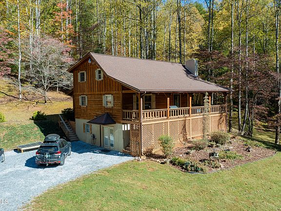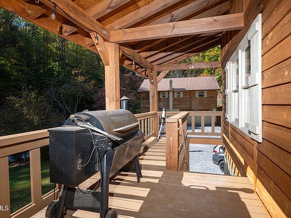 Quintessential, rustic northeast Tennessee teams up with a clean, farmhouse chic renovation at this unchallenged multi-generational property at the base of Holston Mountain. The 15.3 acre getaway is on a dead end street with nothing in sight except wildlife. The 3000 sqft primary home has undergone an complete transformation and it starts in the great room. Walls have been removed to create a true great room. Formerly exposed roof sheathing is now covered in whitewashed panels, a new stacked stone fireplace extends to the ceiling (at the base, a new wood stove) and new LVP flooring throughout the space. The kitchen features new white shaker cabinetry, quartz countertops, including the center island, stainless appliances and a decorative hood. Two main level guest bedrooms share a renovated full bathroom with a patterned tile shower and double sink quartz vanity. The entire upstairs is comprises the master suite. An open upstairs living area overlooks the exposed wooden beam and main level great room. The master bathroom is highlighted by a curved soaking tub, corner glass shower, double sink quartz vanity and shiplapped walls. The large bedroom hosts a walk-in closet with custom shelving. Downstairs features new flooring, a large wet bar that is a range away from being a kitchen, living room, office with built-ins, a large bedroom with a double closet and a another full bathroom/laundry combo. This space has another glass shower, folding counter, cabinets and double vanity. Next door, the 900 sqft1 BR/1BA guest house has an open concept floor plan with a large, vaulted living room and kitchen with wormy chestnut cabinets. The new bathroom features a tile shower and quartz vanity. Fresh paint and decor has lightened up the large bedroom. Below is a 900 sqft 2-car garage or workshop. Additional vehicle space is evident at the 4-car carport. The property also features a chicken coop, greenhouse and generator hookup. This property is an ABSOLUTE must-see
