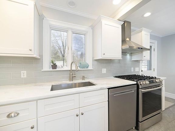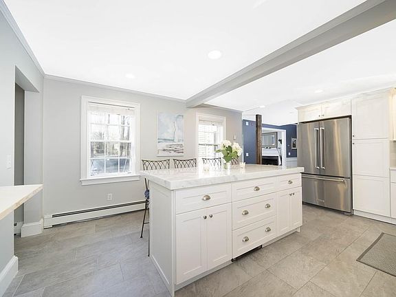 Wenham Village Colonial home with very cool attached garage / Barn, 4 bedrooms & 4 full bathrooms, combining Antique and Open to preserve the charm of yesteryear while meeting the needs & desires of todays' family lifestyle. Enter through a large mudroom w/ plenty of storage & custom cubbies into the Bright White kitchen, w/gorgeous counters, grand island & stainless appliances, now open to the sun filled dining room & comfortable family room. The front room currently used as another living room might also make a great office. Take the front stair case up to a spacious bedroom w/ ensuite bath, a sunporch, & another bedroom. The interior staircase leads to a 3rd good sized bedroom, full bath & the generous master bedroom with it's own bath. This gracious home offers a newer gas boiler, brand new water heater, very cool barn w/ huge loft (now storage & indoor play area), outdoor shed, an amazingly deep lot with level yard, close to shops, trails & desirable H/W schools!