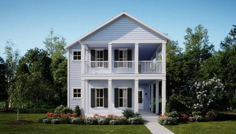 The Calhoun, This beautiful two-story Charleston style home is the largest plan in the collection and features a wraparound porch, plus a covered rear patio for outdoor living. On the first floor is an open dining room, kitchen and family room, along with the owner's suite with large owners bath with washer/dryer connection, there is a full laundry room upstairs so this is a great bonus. Upstairs is a loft surrounded by four large bedrooms, 2 of these have private baths, and there is a shared hall bath, total of 3 full baths upstairs!