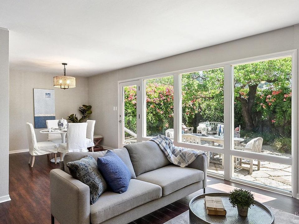 Price reduced - - Great buy on this fantastic turn-key home in Happy Valley. Beautifully maintained home, perched on a sunny corner parcel, offers privacy and ultimate convenience. Step inside and be immediately impressed by the living room's wall of windows overlooking a picturesque yard and private flagstone patio. The yard, featuring flowering trumpet vines, fruit trees and total privacy is your own little slice of heaven. Enjoy a bright, updated kitchen with stainless steel appliances and a revamped bathroom too. Just a few blocks away, you'll find Whole Foods Market, Trader Joe's, Peet's Coffee, and the Montecito Shopping Center. Commuters will appreciate the easy freeway access, while Downtown San Rafael's dining, shopping, and vibrant community events are just blocks away. A one-car garage plus off-street parking and a storage shed completes this gem.