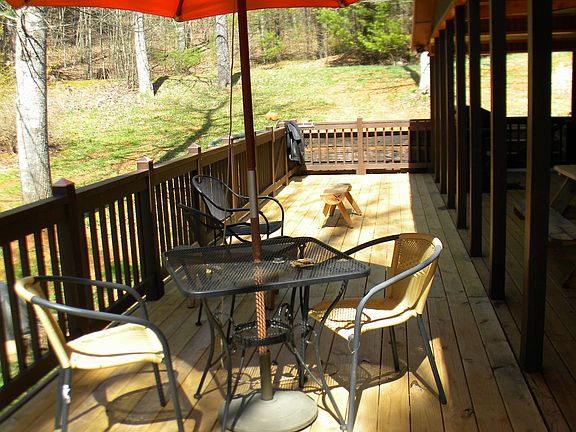 Private Mountain Retreat on 12 acres. Custom home features 3BR, 3 full baths, gorgeous wraparound covered porch and a deluxe garden shed with skylights and a work sink. Spacious living room with transom windows and tile floor, great space to entertain in the combo kitchen/dining/sitting room. The office has a Murphy bed and would make a great mini-suite. The wraparound deck goes all the way around the home...plenty of room to entertain and relax in this beautiful country setting. There is even room for an outdoor kitchen. The three bays in the 24 x 44 garage are finished and have built in-cabinets and 220 service. The property includes a spring fed pond with fishing dock...yes there are catfish and small mouth bass, plus more. Wonderful location just 3 miles from the Blue Ridge Parkway.