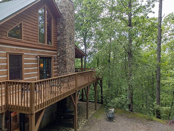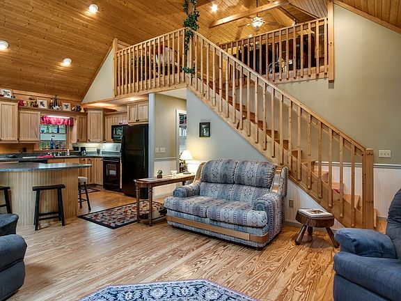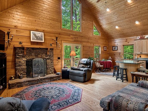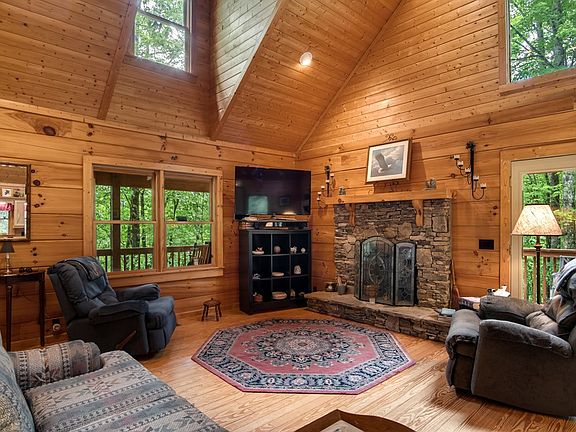 Have you ever dreamed about living in a tree house? This custom built dove-tail log home will make that dream come true! Nestled in among the trees in a very private setting, this home has been well loved and cared for by it's original owner. Solid pine floors, tongue and groove walls and a vaulted ceiling up to the loft area give this home a very open cabin feel. Lots of large windows to allow plenty of natural light and to give you the feeling of living in the trees. Beautiful stone fireplace for those chilly nights and mornings. Open kitchen with island allows you to entertain while cooking. Set up for main-level living the first floor also boasts a large laundry room with pantry and the master suite. Oversized master bedroom with en-suite that has a jacuzzi tub and separate shower. Loft can be used for bedroom or office. 3rd bedroom and 2nd bath downstairs with family room. Access to lower terrace off family room. Wrap around decks and lower terrace allow for plenty of room for outdoor entertaining. Back up generator and detached two car garage. Low maintenance yard makes it perfect for full or part-time living. Frontier Internet.