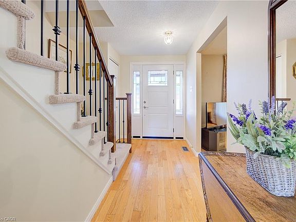 A TRUE FAMILY HOME, LOVINGLY MAINTAINED JUST STEPS FROM CHICOPEE SKI-HILL. Welcome to this move-in ready 4-bedroom, 3-bathroom home located in one of Kitchener’s most desirable, family-friendly neighborhoods. Offering convenient access to Highway 401, public transit, Costco, Fairview Park Mall, Chicopee Tube Park, scenic trails, schools, and more, this home combines lifestyle and location. Step inside to a stunning foyer with updated oak flooring throughout the main level and metal railing and new carpeting on the stairs. The spacious family room seamlessly connects to the eat-in kitchen, featuring quartz countertops, ample cabinetry, and stainless steel appliances. A main-level laundry room with closet space and a powder room adds everyday convenience. Upstairs, you’ll find four spacious bedrooms, each with large closets, and a 4-piece bathroom. The fully finished basement includes a recreation room with a cozy gas fireplace, a newly upgraded 3-piece bathroom, and plenty of storage. Enjoy your private backyard oasis complete with a deck and gazebo—perfect for relaxing or entertaining. Parking for three vehicles, including one in the garage, completes this wonderful family home.
