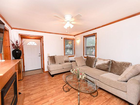 Price adjustment! We listened! You will fall in love with this impeccable Cape Cod style 3 bedroom, 1.5 bath home nestled on a quiet tree-lined street and conveniently located near shopping, medical facilities and expressways! This charmer has 2 convenient first floor bedrooms, full bath with whirlpool tub, a spacious living room with faux fireplace; fully applianced kitchen with electric range with microwave above, dishwasher and refrigerator, plenty of cabinets, counter space, and a generously sized island with additional cabinets that is the perfect place for meal time! The 2nd floor offers an additional bedroom with a wall of built in closets and perimeter storage space! The finished lower level is an extension of the living space and has a great recreation room, convenient half bath, separate shower, laundry area & storage galore! Ceiling fans throughout; laminate, ceramic tile and carpet flrs; natural wood accents! You will love the fully fenced yard and rear patio with retractable awning! Perfect for summer cookouts! The 1 car garage has additional overhead storage. Tear off Roof 4yrs old, new water tank!