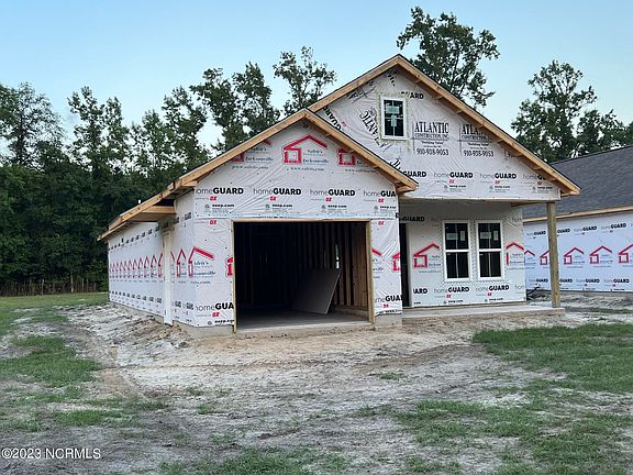 Custom Built Spec Home; the builder built this house as if he were going to live in it. 1292 heated square feet, Large open floor plan with 2 large bedrooms and a Master bedroom with tray ceiling, 5' shower, double sink vanity, and huge master closet. 2 additional large bedrooms. and full hall bath. All bedrooms and baths are insulated/sound proofed for privacy. Well-arranged Kitchen with soft close cabinet doors and drawers, granite countertops, disposal, Dishwasher, Range, and Microwave that is vented to the outside. LVP flooring throughout the home,. Large, 300 sq ft Single car garage with insulated walls and ceiling to help control homes energy efficiency. (10' W x 7'H) insulated garage door, with exterior side entry door to prevent from having to enter house through the living area and enter into a spacious Mudroom. There is also a pull down stairs for attic access with additional storage. Country style front and rear porch for leisure time. ONWASA water, and Sewer allows use of the entire lot without worries of a septic tank and plenty of room to park your boat trailer/ camper or have that vegetable garden. Also, you may like to build that she-shed for storage or shop or crafts. There will be a 6' x 100' vinyl privacy fence between each home. This home is conveniently located between Camp Lejeune Marine