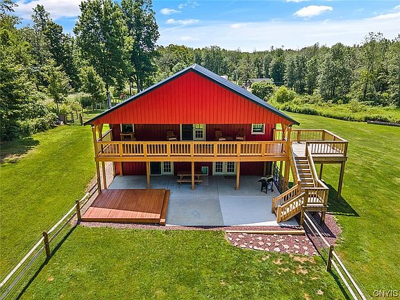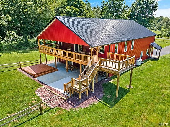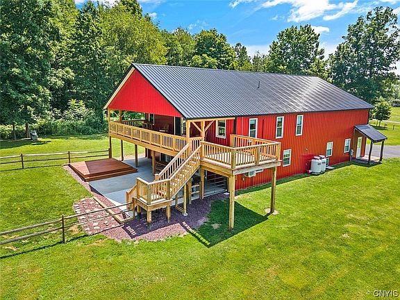 Welcome to this extraordinary 3-bay fully insulated pole barn house nestled on a beautiful 14-acre lot in the charming town of Scriba. Boasting a newly fenced yard, 14X24 Shed, large deck and patio. This home has undergone numerous upgrades such as heat pumps/air conditioning, propane furnace, woodstove, appliances, deck expansion, fencing, carpets, lighting, drainage system in backyard just to list a few, ensuring comfortable and modern living. With its spacious interior, radiant flooring, freshly painted interior and picturesque surroundings, this property offers the perfect blend of rustic charm and contemporary luxury.