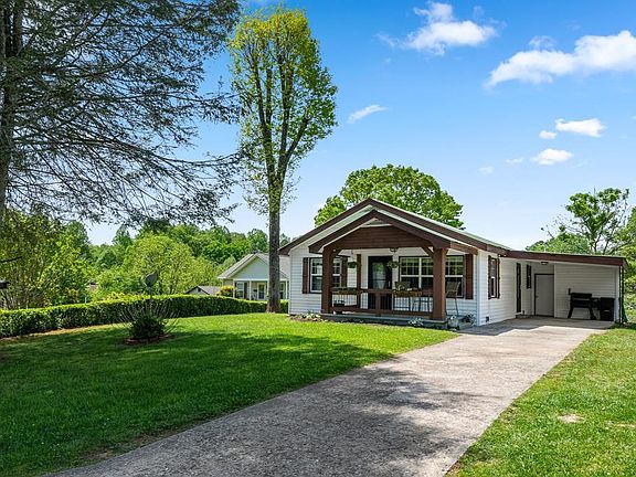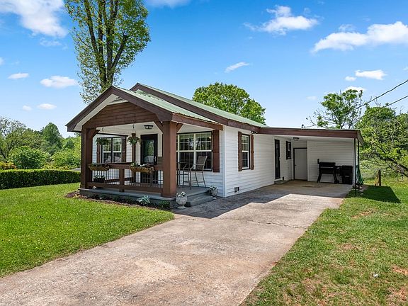Nestled in a charming and cozy setting, this sweet cottage offers excellent accessibility and a touch of elegance. With 2 bedrooms and 2 beautiful bathrooms complete with stunning tile showers, this home exudes charm. Inside, you'll find a welcoming dining room, a laundry room, and the bonus of vinyl insulated windows that flood the rooms with inviting natural light. Step inside, and you'll be greeted by the seamless blend of laminate wood flooring and plush, brand-new carpets that invite you to sink your feet in. The kitchen is open concept with modern appliances and custom cabinetry. Outside, the property showcases raised flower beds, meticulously landscaped grounds, and a freshly stained exterior. A one car carport with a storage area, a rocking chair front porch, and a charming backyard with a fire pit area create the perfect backdrop for relaxation and entertainment. For added convenience, a nice outbuilding provides extra storage space. Situated near the vibrant downtown area of Blue Ridge & McCaysville, this residence is a true treasure offering both tranquility and proximity to urban amenities. Don't miss the opportunity to make this your forever home—it's a real keeper!