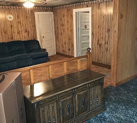 Country living close to town on 2.1 acre lot. Has large rooms throughout including separate living room and den. Kitchen and dining open with separate laundry area. Covered front porch and large front yard. Does not have A/C. Property being sold as-is.