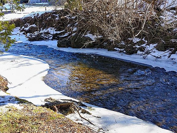 This affordable ranch offers way more space than its exterior appearance and it situated on a spacious .41 acre lot with long frontage on Tenney Brook. The front door leads you into the large craft room which could also be used as a living room w. Rinnai heater. Off from the back of the craft room is an unfinished room perfect for storage. The kitchen is very spacious and offers a large dining area w. glass doors that leads you to the spacious 3 season room. This room has an abundance of glass allowing natural light to penetrate easily. This room takes in the view of the large back yard and the babbling brook. What a place to sleep in the summer and listen to the water flowing down the brook. The large living room could be the third bedroom if desired or kept as a living room w. brick fireplace. The balance of the first floor offers two bedrooms, 3/4 bathroom and landing area that leads you to the lower level. The lower level is mostly finished an offers an office/play room, family room w. bar area, half bath and mechanical room with modern Buderus boiler and Amtrol Hot Water tank. The exterior is easy to maintain, as the siding is vinyl and the asphalt roof was new in 2022. Time to call this one home.