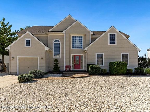 This immaculate custom home is situated in The Coves section of Village Harbor community. It sits on 74 ft of waterfront and is a short boat ride down the scenic Mill Creek to the Manahawkin Bay and only a few minutes by car to LBI, shopping, restaurants, and the GSP. This home has plenty of space as a vacation home or year-round living. The 1st floor offers an entrance foyer, open living room dining kitchen floor plan, living room with a gas fireplace and access to a beautiful sunroom to enjoy the scenic lagoon views, 1.5 baths, a very spacious master bedroom with a full bath and walk-in closet, and a kitchen that is upgraded, new appliances, granite counters and coastal white cabinets with access to a laundry room with a prep kitchen and garage access. The 2nd floor offers 3 bedrooms and 2 full baths - 1 bedroom is a guest suite with sitting room and full bath, a hallway full bath, a 2nd bedroom, and a 3rd spacious bedroom which is currently being used as an office. There are plenty of closets and storage space in this home. The exterior is nicely landscaped and offers vinyl shake siding, trex deck off of the sunroom, trex and wood dock, and a vinyl bulkhead only 6 years young. The flooring throughout the home is hardwood, ceramic tile, and recently installed new carpeting. The 1 car garage is oversized with storage closets and a workshop area. This home has been lovingly maintained so it's move in ready. Don't miss this beauty.