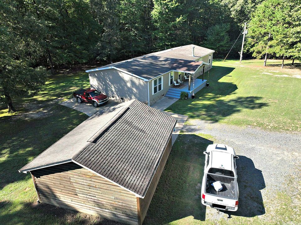 2013 double-wide mobile home built on a permanent foundation, with a wood-burning fireplace and crown molding throughout. Master bathroom has a large soaker tub and a walk-in shower. Master bedroom includes a walk-in closet. There is an open floorplan and a tall breakfast bar in kitchen. Home also includes a private office. There is one Jack & Jill bathroom. Outside there is a 20x20 shop with electric, and a 20x18 covered shed with concrete slab.