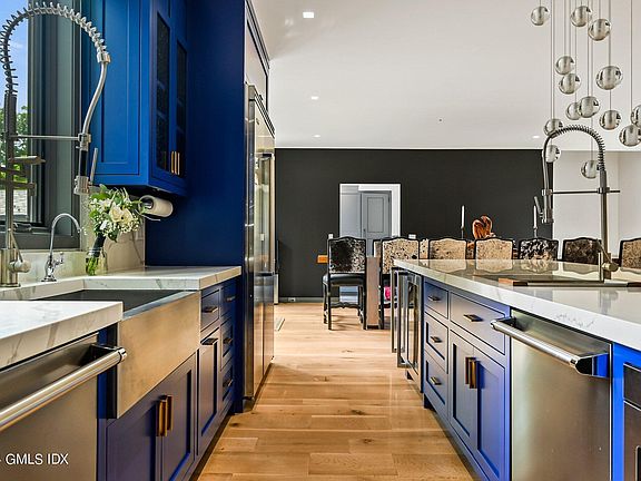 Welcome to West Norwalk. This modern colonial single-family home, rebuilt in 2019, retains only the garage from the previous structure, which was added in the 2000s. This magnificent house boasts 5,397 square feet of living space. The exterior features high-quality stucco and natural stone accents, complemented by a durable slate roof designed to last a lifetime. Upon entering, you will be greeted by high ceilings, hardwood floors, abundant light, and an open-concept layout. The living room includes an elegant fireplace, and the kitchen, equipped with high-end appliances and designed with sophisticated taste, is perfect for entertaining. The formal dining room exudes elegance, with glass doors leading to the stunning patio. The first level also includes a spacious office with built-in bookshelves and a desk, a versatile room suitable for a playroom or guest room, and a functional and stylish half bathroom. Ascending to the second floor, you'll notice the stairway's refined design, featuring a glass wall on one side and stone on the other. The primary bedroom offers a private en-suite bathroom and a large closet. Adjacent to the primary bedroom is a spacious room perfect for a gym or family room, complete with its own bathroom, closet, and jacuzzi. Down the hall, you will find three additional bedrooms; two share a bathroom, while the third has a private bathroom. A convenient laundry room is also located on the second floor.