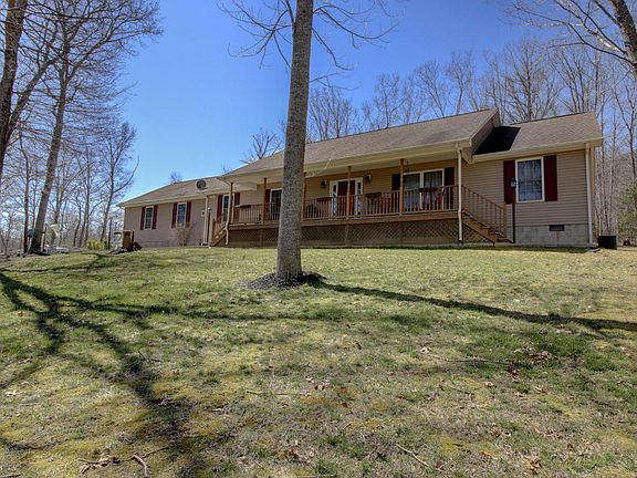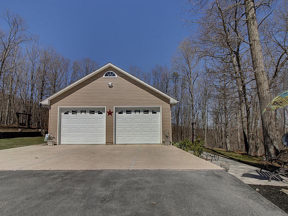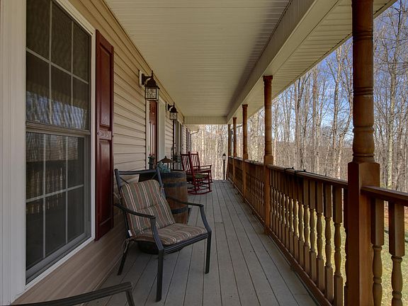 This stunning, well maintained, one level living home is located on approx. 25 acres in Botetourt Co. Home features sparkling hardwood floors throughout, open floor plan, large kitchen w/granite countertops/backsplash, stainless steel appliances, w/island, large heated attached 2-car garage w/overhead storage. An additional 4 car detached garage w/heat & car lift. Ideal for the car enthusiast or mechanic. Enjoy peace & quiet while relaxing on the rocking chair front porch.