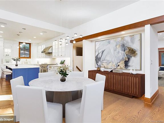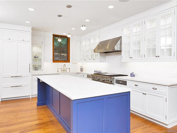 Private 2.5 acre retreat located in convenient South Wilton, just 45 miles to NYC. This custom-built cedar home offers the perfect escape w/ 5 BRs, 4 1/2 baths, 3 fpls & an expansive property. Serene, ideally located & just renovated - this is a must-see that won't last. Soaring 16ft ceilings welcome you into the foyer, with 19ft double height ceilings in the adjacent living room, complete w/ stone fpl. Brand new hardwoods, custom millwork & large south & east-facing windows continue into family room, offering views of the sweeping property & French doors to back porch. Attached to family room is a dining area open to an impeccably designed brand new, fully renovated dream kitchen - Subzero fridge, 48 Wolf range (w/ grill & skillet), Danby marble counters, large eat-in island, warming drawer, drawer microwave, instant hot water tap & more. Outside, a stone patio provides an ideal outdoor entertaining space. Upstairs master & office space allow for interior balcony views down to main floor. Master With a walk-in closet, ensuite bathroom, fireplace & bird's-eye views of the scenic back yard, the master with ensuite bathroom offers a tranquil escape. Lower level complete w/ gym/wine cellar, bonus room, cedar sauna & heated bathroom floor. Ideal southern location makes it a convenient drive to Norwalk, New Canaan & Westport. Only 5 min drive to Wilton town center (market, movie theater, library, etc), Bradley Park, Cranbury Park, Miller Driscoll Elementary & more. Agt related.