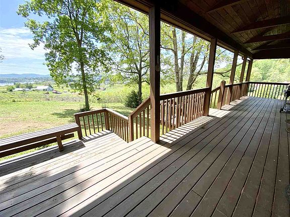 Majestic log cabin with full basement overlooking Cherokee Lake at German Creek. Private setting with covered porch and gorgeous lake & mountain views. Over 3,000 finished square footage perfect for your family. This home features open floor concept, Lots of closet storage, mechanical room with storage connected to extra long garage, large loft with walk-in lighted and floored attic, laundry room with storage, and an office/bed room/library/nursery just off of master suite. Come see what it would be like to sit and relax on the full length covered front porch enjoying the magnificent views.