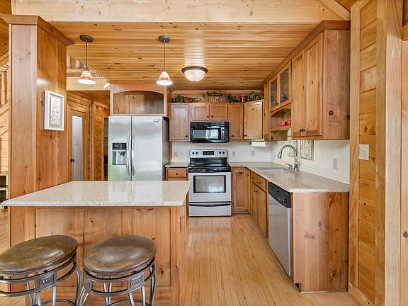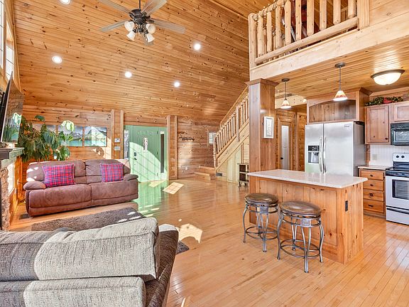 Enjoy this beautiful log home with majestic mountain views on the Ocoee River in gorgeous Polk County! Just minutes away from a lake front beach and marina, white water rafting, hiking, and biking trails! Go kayaking, fishing or tubing from your river front backyard! This log home comes with hardwood floors throughout, quartz kitchen countertops, and features a 16 foot ceiling in the spacious great room that makes you feel you're living the dream at the foot of the mountains. The home features a large master suite on the main floor with private office and extra large walk in closet. Master bath has a large soaking tub and a stand alone shower. A second bedroom, full bath, and the laundry room can also be found on the main floor. The second floor houses a spacious third bedroom that doubles as a second master suite and features his and her closets, a wet bar, and full bath. The second floor also features a 10x12 loft that can double as a 4th sleeping area and overlooks the 16 foot vaulted ceiling that crowns the great room on the main floor. A large family room, or second living area, can be found just off the great room that offers panoramic views of the river and mountains. The home comes a workshop at the ground level just off the backyard. Enjoy summer nights and crisp fall mornings out on the extra large deck that overlooks the Ocoee River. Have your morning coffee or sweet tea on the front covered porch. The Property features its own dock and the subdivision has a community boat ramp as well as a designated neighborhood riverside hiking trail. Come check out this beautiful catch on the river, and we are talking about the home - in addition to the fish in the river!