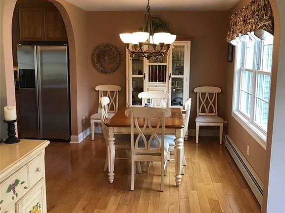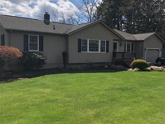 Fabulous updated 3 bedroom ranch with open floor plan. 2 and a half baths, central air, hardwood floors, bright and sunny living room, great room with gas fire place with slider leading to deck and above ground pool, granite counters in the kitchen with stainless steel appliances, surround sound wired, tray ceiling in one bedroom, archway leading to dining room and kitchen. Partially basement, one car garage, beautiful lot. Nothing to do but move in .